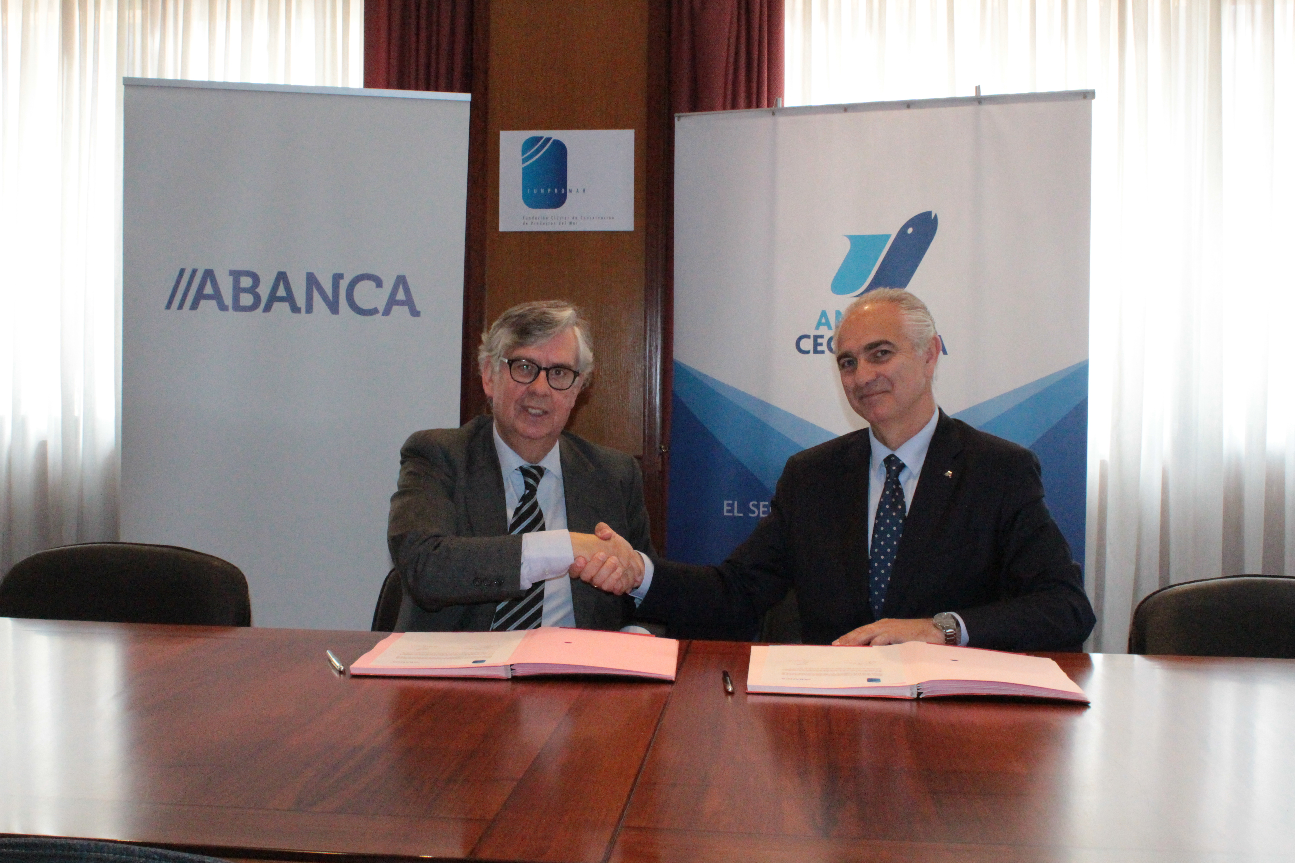 En el acto de firma, participaron el Director de Negocio Institucional de Galicia, Asturias y León de ABANCA, José Lino Comesaña Calvo, y el Representante Legal de FUNPROMAR y Secretario General de ANFACO-CECOPESCA, Juan Manuel Vieites Baptista de Sousa.